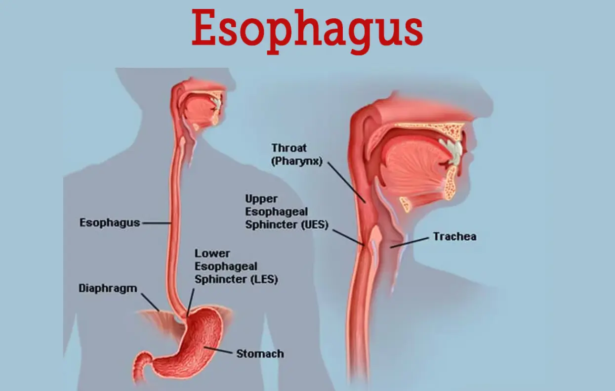 Esophagus or food pipe is a long hollow muscular tube which begins in the throat. From throat it enters the chest, crosses the muscular partition between the chest and abdomen called diaphragm to enter the abdominal cavity. In the abdominal cavity esophagus joins the stomach.